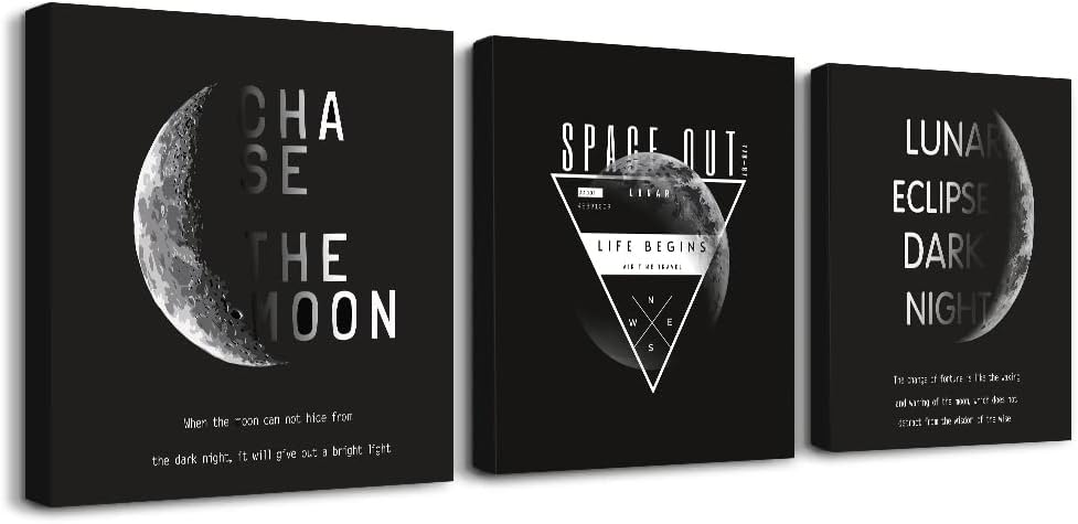 أسود وأبيض كوكب قمر، ديكور حائط المكتب، مطبوعات قماشية 3 قطع” إلغاء الرد