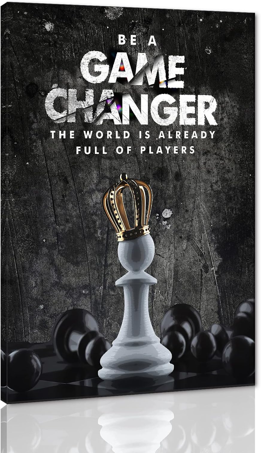 لوحة فنية جدارية بعبارة إيجابية تحفيزية «Be a Game Changer» بوستر مطبوع على قماش لديكور المكتب وغرفة الاجتماعات في مكان العمل مؤطر وجاهز للتعليق – عرض 31 سم × ارتفاع 46 متعدد الالوان