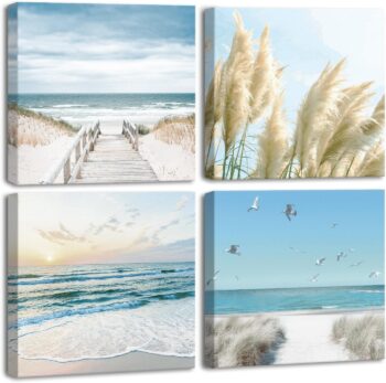 مطبوعات فنية جدارية لشاطئ البحر، مطبوعات قماشية بنمط أمواج البحر، لوحات صور قصب الساحل، بوستر قماشي بتصميم شروق الشمس، مجموعة ملصقات المناظر البحرية الحديثة لغرفة المعيشة وغرفة النوم وديكور المنزل من