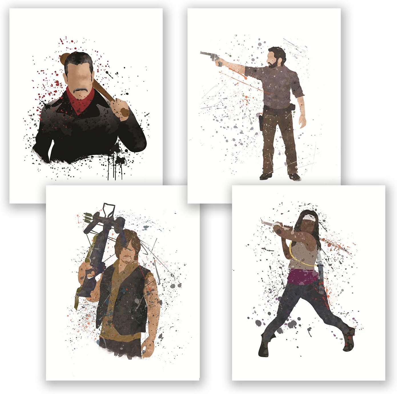 بوستر بتصميم شخصيات مسلسل الموتى السائرون من بي جي بورو، ديكور منزلي بألوان مائية بتصميم شخصيات ريك جرايمز ونيجان وداريل ديكسون وميشون، طباعة فنية لغرفة النوم، هدية للأصدقاء، 20×25 سم، مجموعة من 4 قطع