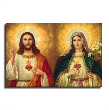 صورة بوستر كاثوليكي على شكل قلب يسوع المقدس وقلب يسوع الطاهر، صورة دينية مطبوعة على قماش بتصميم المسيح، لوحة حائط لتزيين غرفة المعيشة وغرفة النوم (بدون برواز، 41×61 سم)