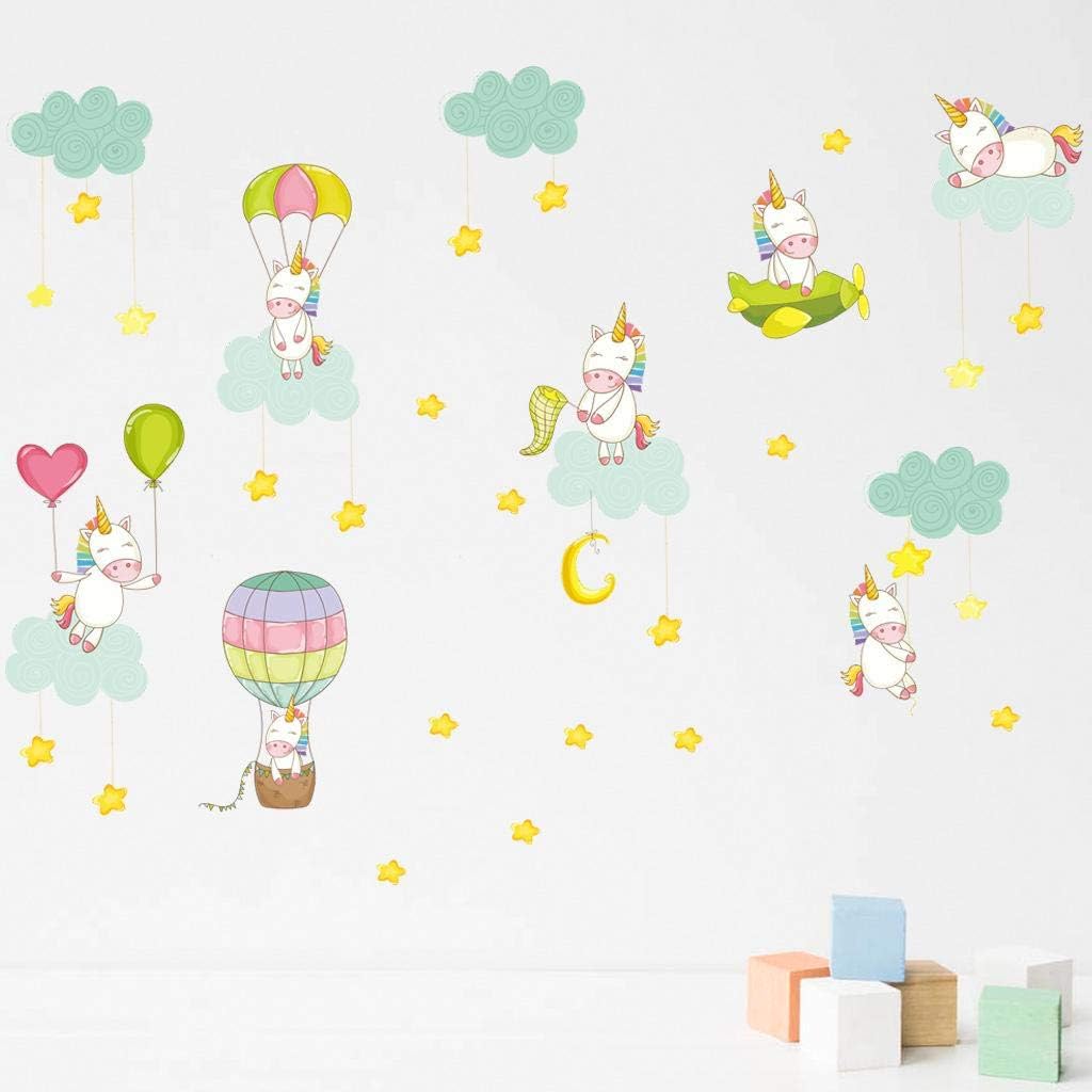 ملصقات حائط بتصميم يونيكورن لغرفة المعيشة وغرفة النوم وروضة الاطفال مهر زهري بسيط من بلاستيك PVC دافئ مقاوم للماء ذاتي اللصق 10