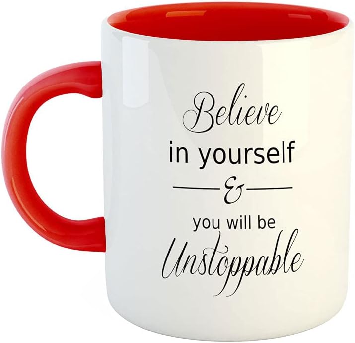 ASHVAH Believe in Yourself & You Will Be Unstoppable Inspirational Motivational Quotes Red 11oz Coffee Mug Tea Cup – Red