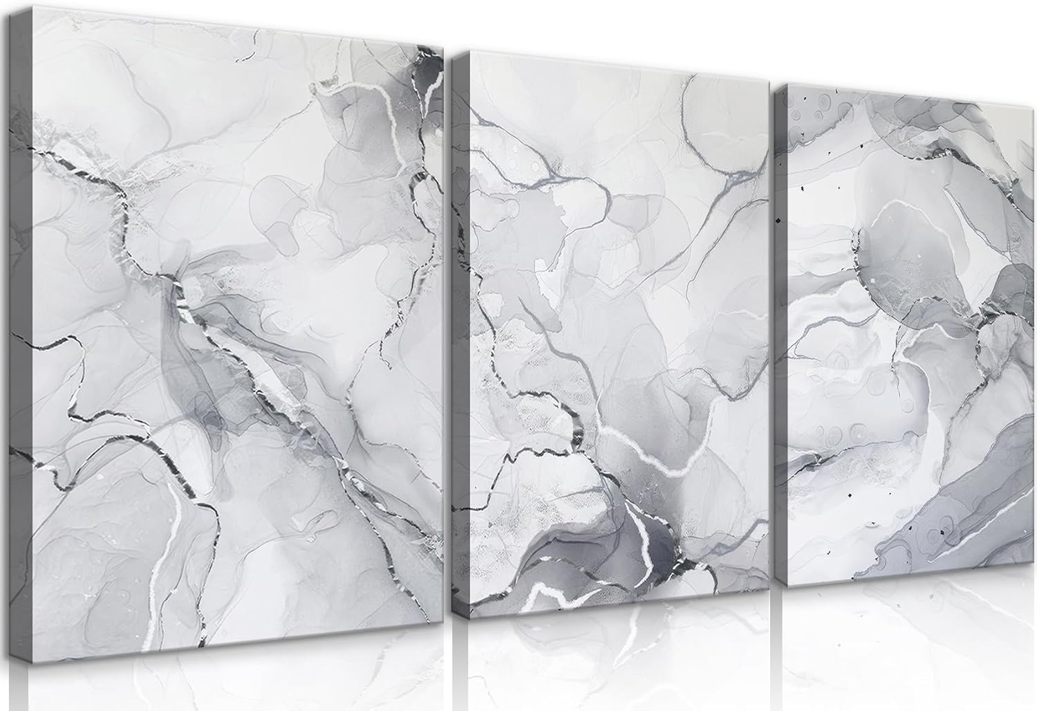 BJVJKSU Gray White Silver Abstract Marble Canvas Wall Art