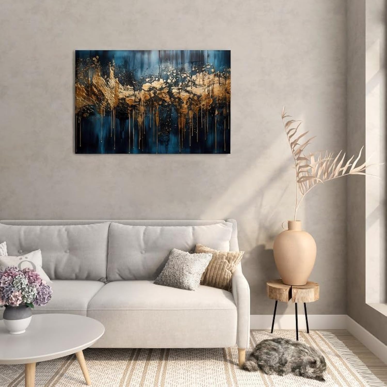 Dark Blue & Gold Abstract Canvas Art – 60x40 cm