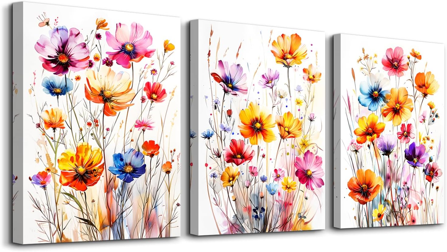 DZRWUBHS Floral Watercolour Canvas Wall Art (3 Pcs)