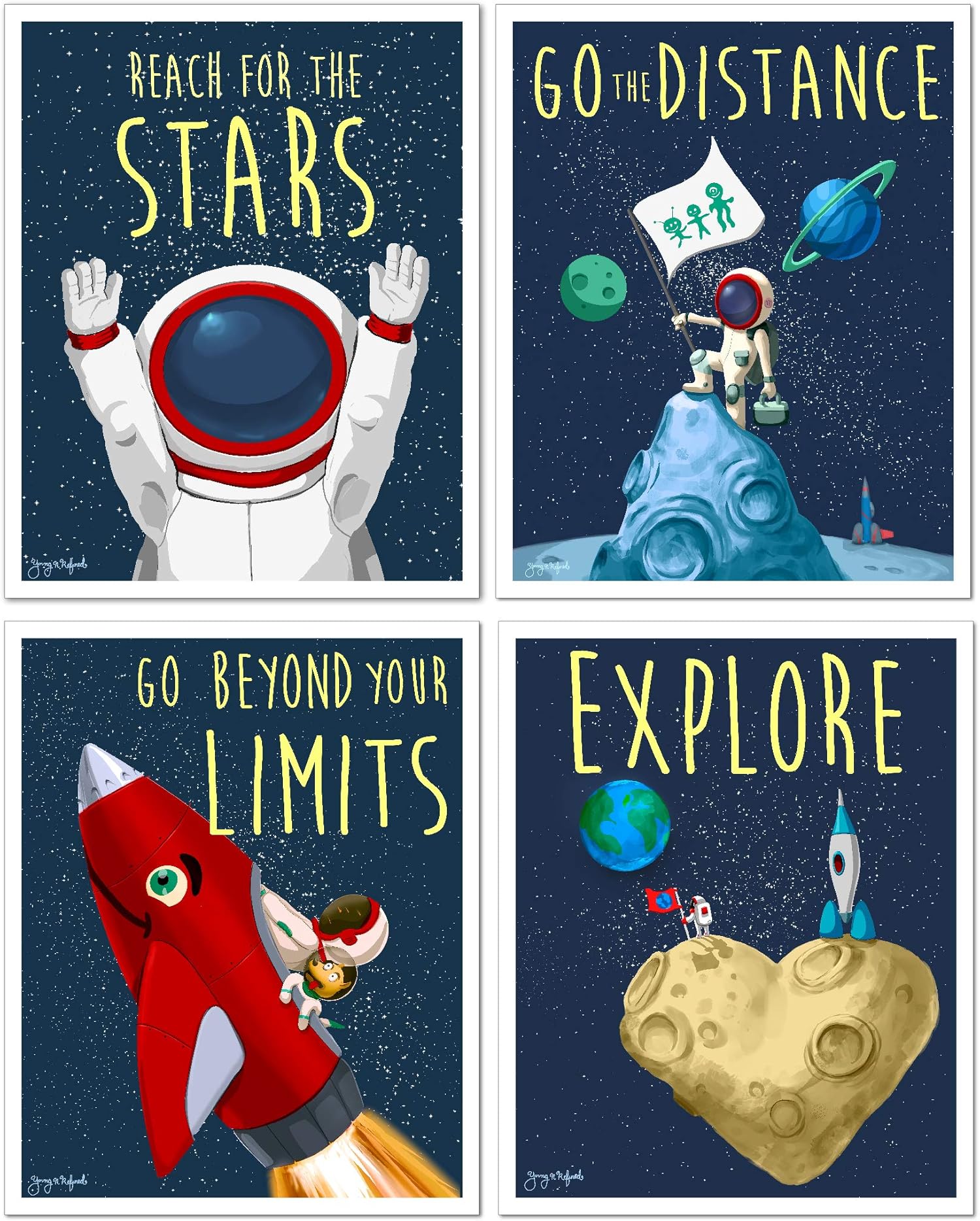 Young N Refined Space astronaut motivational wall art Posters (pack of 4) kids room cute prints UNFRAMED (8×10)
